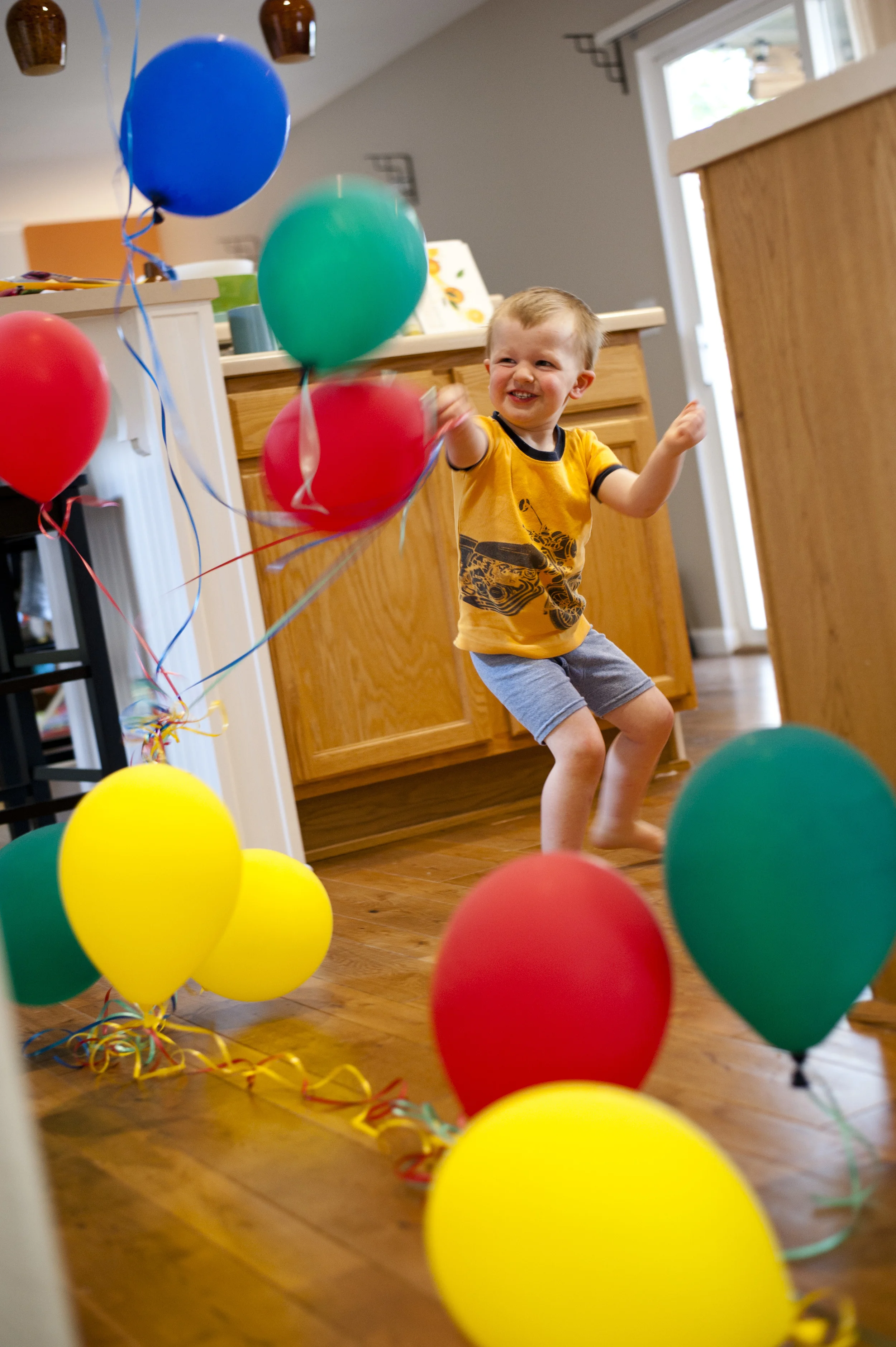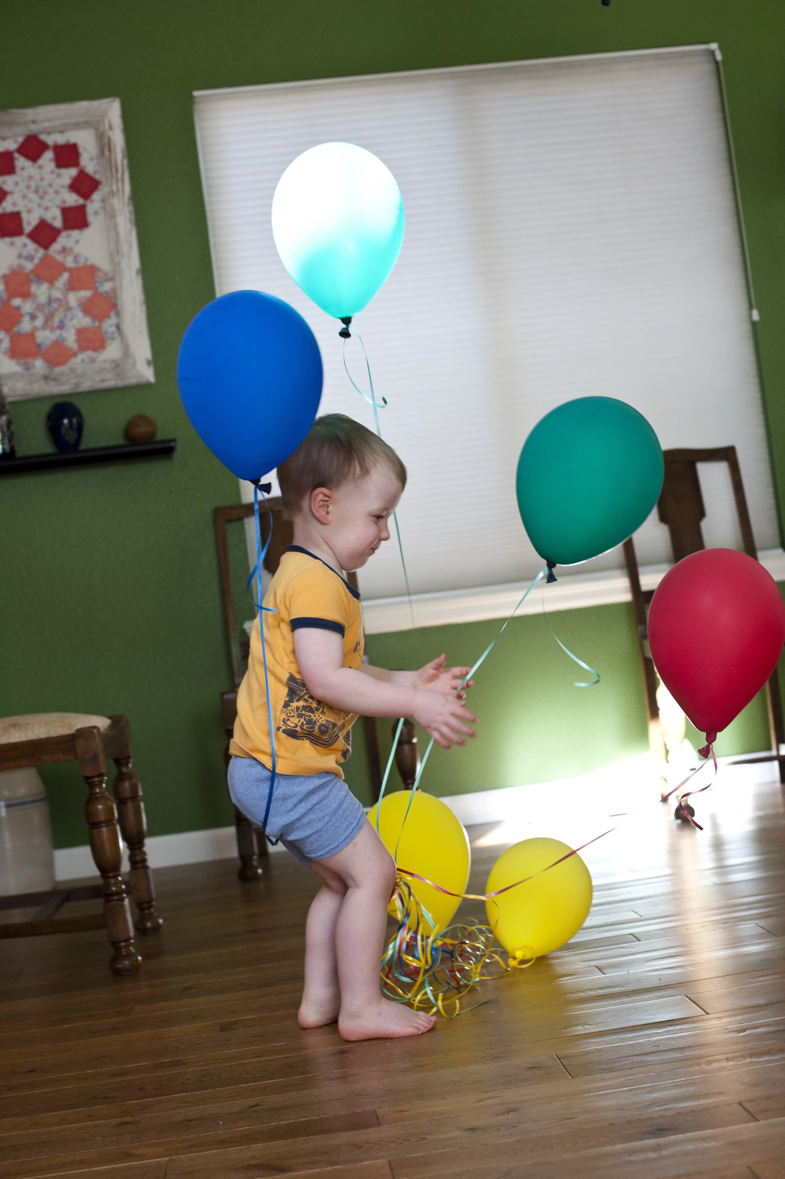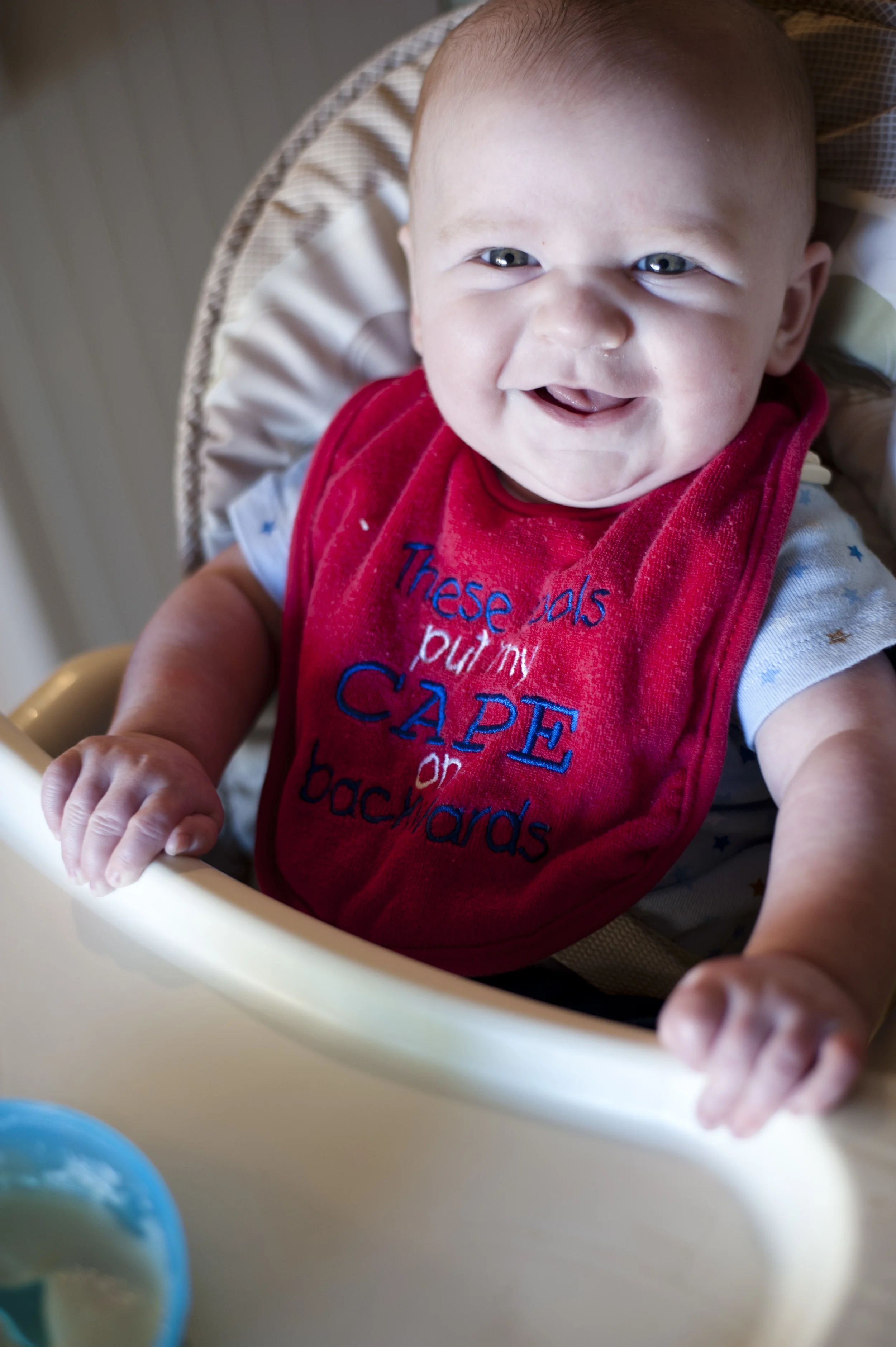 We have slacked a bit getting to the cleaning part after Sam's birthday but Sam loved some good ole karate time with the balloons while Mama picked up. Ry, on the other hand, was not to sure about his first go with rice cereal. Sam did the honors at feeding Ry his first bite of "real" food...WAY TO GO SAM!!!